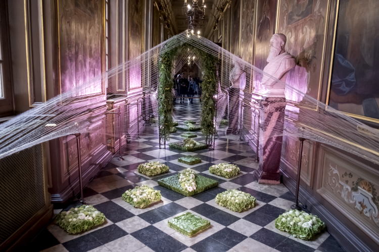 Pendant cinq jours enchantés, hall d’entrée, couloirs, salles de réception… se parent de dizaines d’arrangements floraux, inédits et surprenants, transformant le magnifique bâtiment en une promenade idyllique dans un univers enchanté, plein de parfums enivrants et de couleurs chatoyantes.